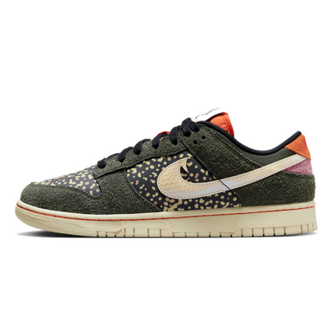 The Nike Dunk Low 'Rainbow Trout' is a captivating and unique sneaker that draws inspiration from the beauty of nature, specifically the vibrant and colorful rainbow trout fish. This sneaker features a detailed and textured design that mimics the trout's distinctive patterned skin, combining various hues that reflect the fish's iridescent scales. The use of premium materials ensures both durability and comfort, while the iconic Dunk Low silhouette provides a timeless and versatile base. The 'Rainbow Trout' edition stands out for its creative concept and execution, offering sneaker enthusiasts a piece that's not just footwear but a work of art. Ideal for those who appreciate sneakers with a story and a connection to the natural world, the 'Rainbow Trout' Dunk Low is a testament to Nike's innovative design approach, blending the worlds of sportswear and the great outdoors seamlessly.