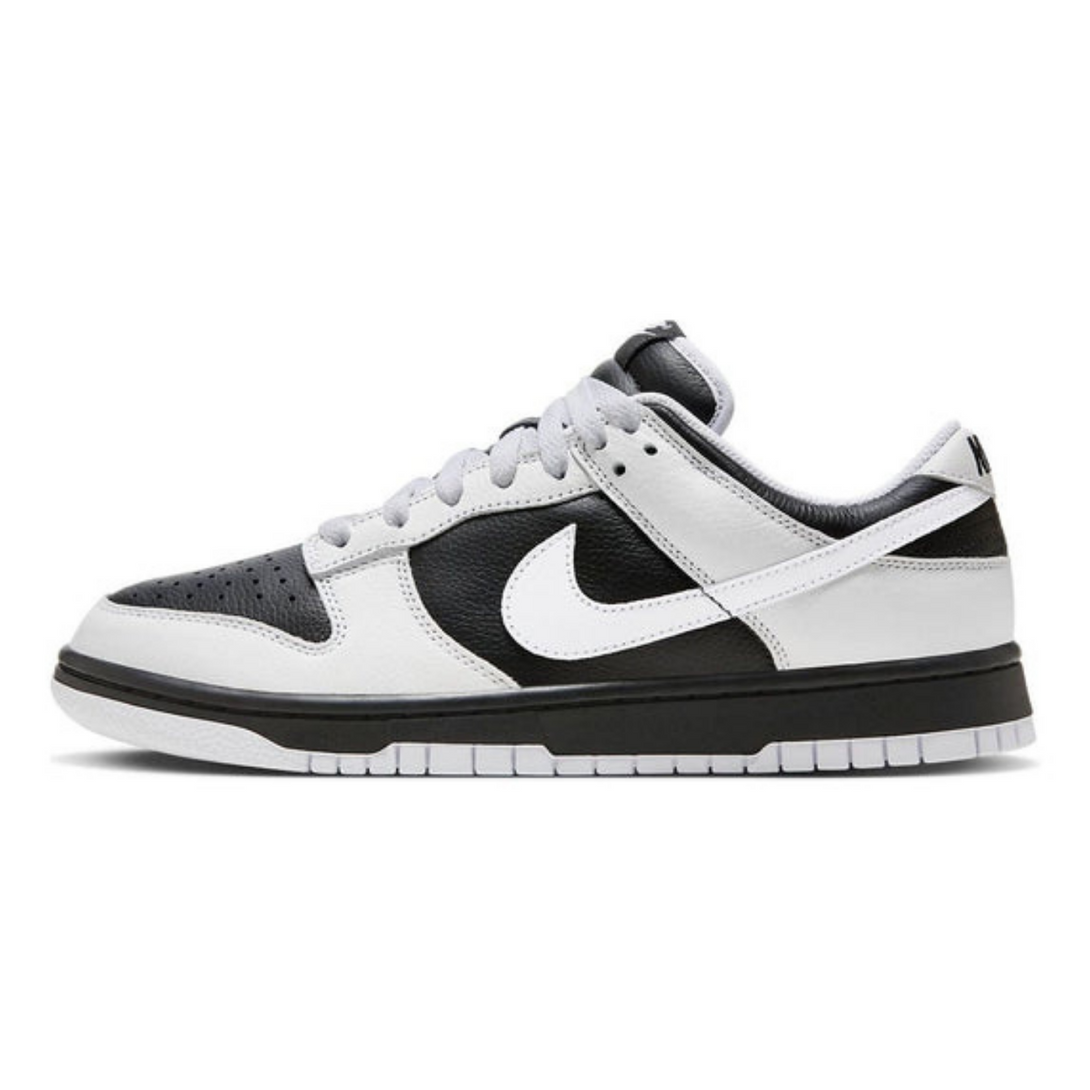 The Nike Dunk Low 'Reverse Panda' is a stylish inversion of the classic 'Panda' colorway, offering a fresh and contemporary take on a beloved design. This sneaker features a dominant white leather base contrasted by black overlays, creating a striking visual appeal that's both bold and minimalist. The 'Reverse Panda' maintains the iconic Dunk Low silhouette, ensuring timeless appeal while introducing a new, eye-catching color scheme. Crafted with high-quality materials, the shoe promises durability and comfort, making it suitable for everyday wear. This rendition is perfect for those who appreciate classic styles with a modern twist, providing a versatile and fashionable addition to any sneaker collection. The 'Reverse Panda' is more than just a shoe; it's a statement of style, celebrating the enduring legacy of the Nike Dunk Low with a new, inverted color palette.