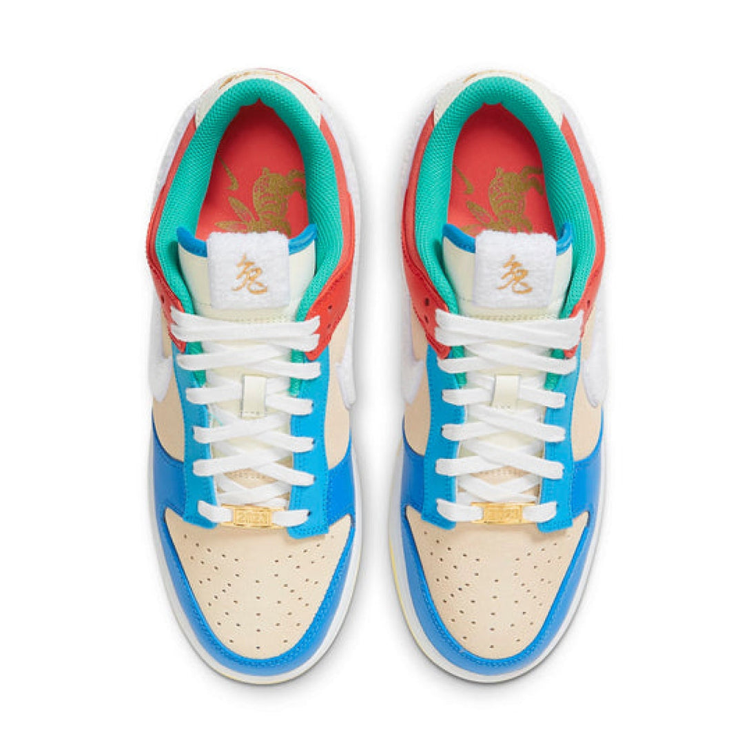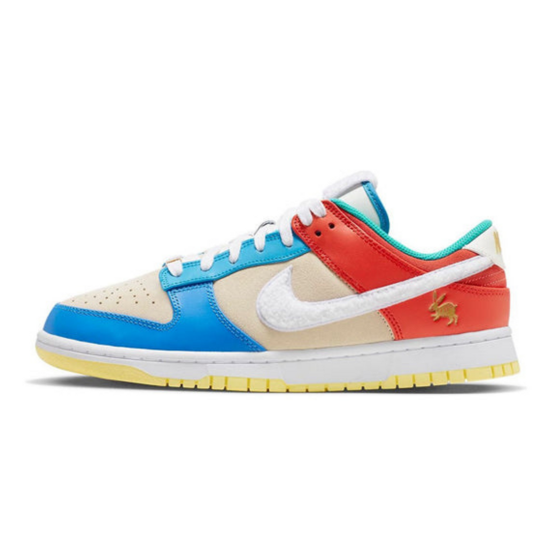 The Nike Dunk Low 'Year of the Rabbit - Multi-Color' is a vibrant celebration of the Chinese New Year, paying tribute to the rabbit, a symbol of longevity, peace, and prosperity in Chinese culture. This sneaker showcases a lively multi-color palette, featuring shades that resonate with festive joy and cultural significance. The design incorporates a mix of premium materials, including a soft, rabbit-inspired fur and smooth leather, adding a touch of luxury and thematic coherence. Special details, such as rabbit graphics and unique embroidery, infuse the shoe with personality and depth. It's not just a sneaker; it's a wearable piece of art that combines Nike's innovative design with traditional symbolism, offering both comfort and a story with every step, making it a coveted item for collectors and celebrants alike.