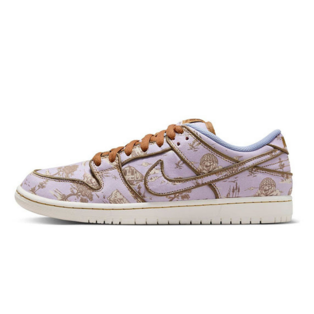 The Nike SB Dunk Low Premium City of Style is a visually engaging and artistically inspired sneaker that brings the tranquility and beauty of pastoral art to the streets. This edition features a unique and intricate pastoral print, showcasing a scenic landscape that evokes a sense of calm and serenity. The premium construction of the shoe includes high-quality materials, ensuring durability and comfort, while the detailed print adds a touch of elegance and artistic flair. The sneaker is equipped with a padded collar and Zoom Air insole, offering superior comfort and support, catering to the needs of skaters and sneaker enthusiasts alike. The rubber outsole provides excellent traction, making the 'Pastoral Print' as functional as it is visually striking. This SB Dunk Low is a celebration of art and skate culture, blending Nike's innovative design with creative expression.
