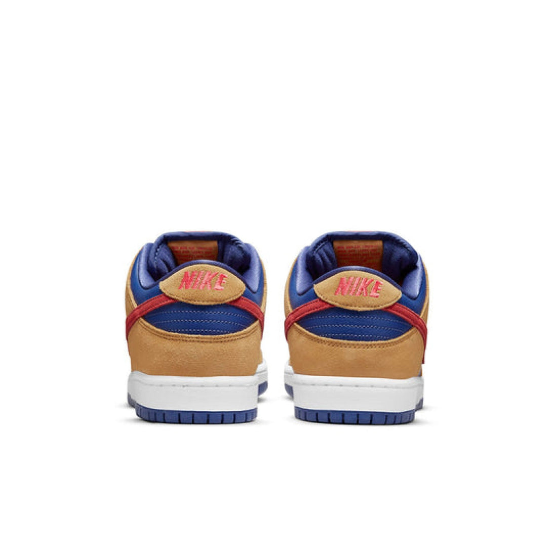 The Nike SB Dunk Low 'Reverse Papa Bear' is a fresh reinterpretation of the iconic 'Three Bears' pack, offering a nostalgic yet innovative twist on a beloved classic. This sneaker inverts the original 'Papa Bear' colorway, presenting a playful and eye-catching design. Its luxurious suede upper, in a harmonious blend of deep navy and vibrant light blue, pays homage to its predecessor while forging its own identity. The contrasting orange accents on the Swoosh and tongue add a pop of color, embodying the spirit of skate culture with flair. Engineered for skateboarding, it features a Zoom Air unit and a padded tongue, ensuring comfort and responsiveness. The 'Reverse Papa Bear' is not just a shoe; it's a tribute to skateboarding history, blending performance with a bold, expressive style.