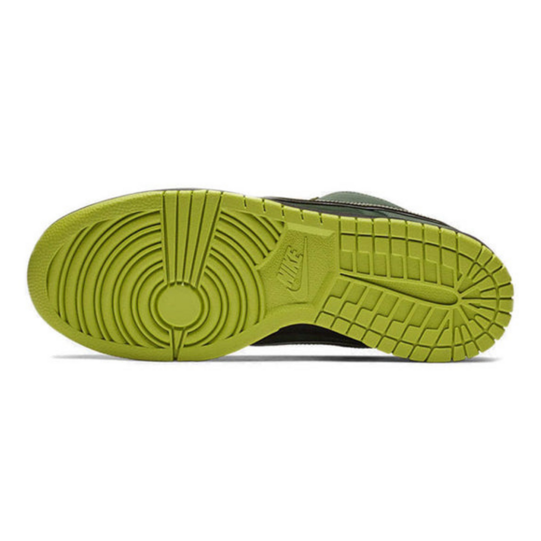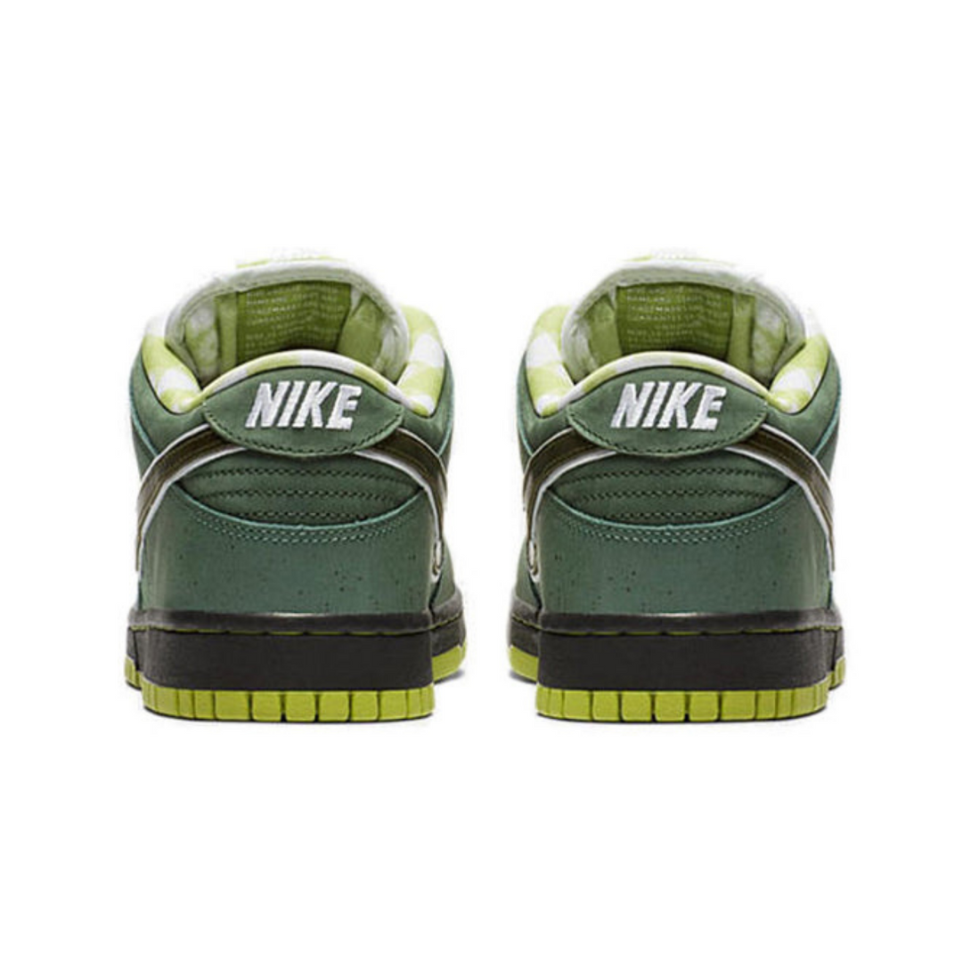 The Nike x Concepts SB Dunk Low 'Green Lobster' is a stunning collaboration that marries street culture with eccentric luxury. This exclusive release is part of the iconic 'Lobster' series, known for its unique colorways and premium materials. The 'Green Lobster' iteration features a vibrant green upper, reminiscent of the rare crustacean it's named after. The sneaker is constructed with fine-quality nubuck leather, offering a plush feel and durability. Special details include a checkered picnic-tablecloth pattern on the inner lining and an elastic band around the forefoot, mimicking a lobster's claws. A padded tongue and Zoom Air cushioning ensure comfort and performance, while the speckled outsole adds an extra touch of flair. This collaboration is a testament to Nike and Concepts' creativity, offering sneaker enthusiasts a piece that's as collectible as it is wearable.